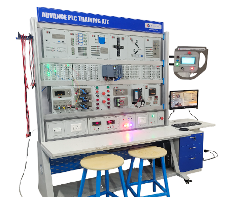 The customized PLC training kit enables students to gain hands-on experience with PLC programming languages and HMI programming. It provides practical exposure to communication protocols such as Modbus, Ethernet, and CANopen. The kit includes both digital and analogue I/O modules, allowing students to measure signals and create logical control conditions, thereby enhancing their understanding of industrial automation systems. This comprehensive training tool helps students develop critical skills needed in automation industries, including troubleshooting, system integration, and control logic design. By working with real-world components and protocols, learners can better prepare for careers in manufacturing, process control, robotics, and smart factories. The hands-on nature of the kit fosters problem-solving abilities and deepens technical knowledge.